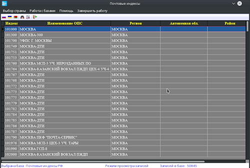 Программа "Почтовые индексы субъектов РФ" предназначена для просмотра и поиска информации о субъектах РФ.